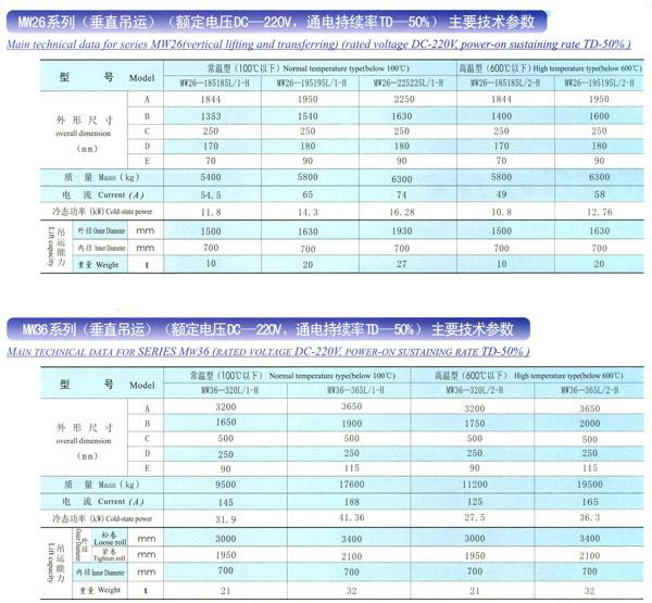 MW16、MW96、MW26-MW36系列吊運(yùn)鋼帶卷用電磁鐵